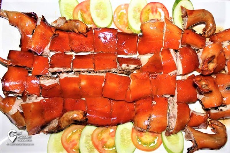 Sau đó, người ta bỏ lợn ra khay, để nguội khoảng 1 tiếng trước khi chặt nhỏ ra bày đĩa. Đĩa thịt lợn sữa quay chuẩn cần phải có màu vàng ruộm, thơm ngon và dậy mùi hương liệu. Cắn một miếng là có thể cảm nhận hết vị giòn giòn của lớp vỏ, vị ngọt của thịt bên trong chín tới, đi kèm với vị thơm đặc trưng của lá mắc mật vô cùng đậm đà.