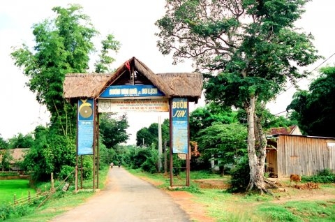 Đến buôn Jun, nhìn những ngôi nhà sàn theo kiểu kiến trúc cổ truyền của đồng bào M’nông nép mình dưới bóng cây xanh, ngắm các thiếu nữ buôn làng chăm chỉ cần mẫn bên khung dệt thổ cẩm…, du khách sẽ ngỡ như mình đang ngược dòng thời gian trở về với khung cảnh thanh bình, nên thơ đẫm chất huyền thoại đã từng in dấu ấn vào những bản trường ca thuở xa xưa…