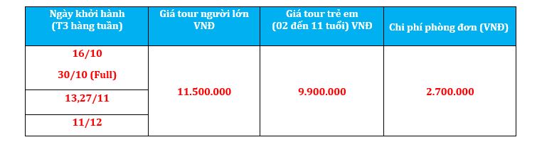 GIÁ TOUR BAO GỒM:
