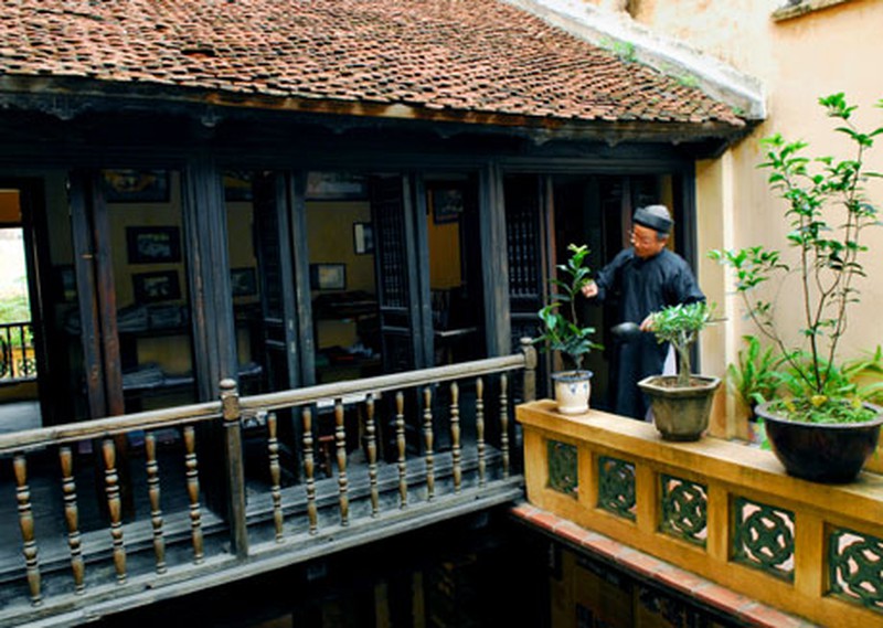 Ông giáo yêu cái vườn cây nhỏ đằng sau nhà đó lắm. Những cây thông, cây si, cây đa… mang những cái cành nho nhỏ uốn lượn ngoằn ngoèo, cành thì nằm ngang, cành thì vươn thẳng rất sinh động, với những chiếc rễ chùm buông xuống thơ mộng như cây thật bên bến sông trên đường về quê ngoại của tôi. Bên cạnh những chậu cây cảnh, là những chậu hoa hải đường, hoa ngâu, hoa mai trắng với những cái cành gầy guộc, khẳng khiu.