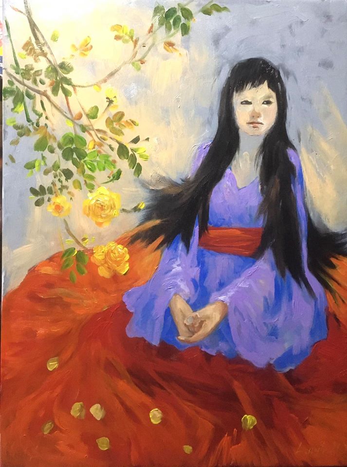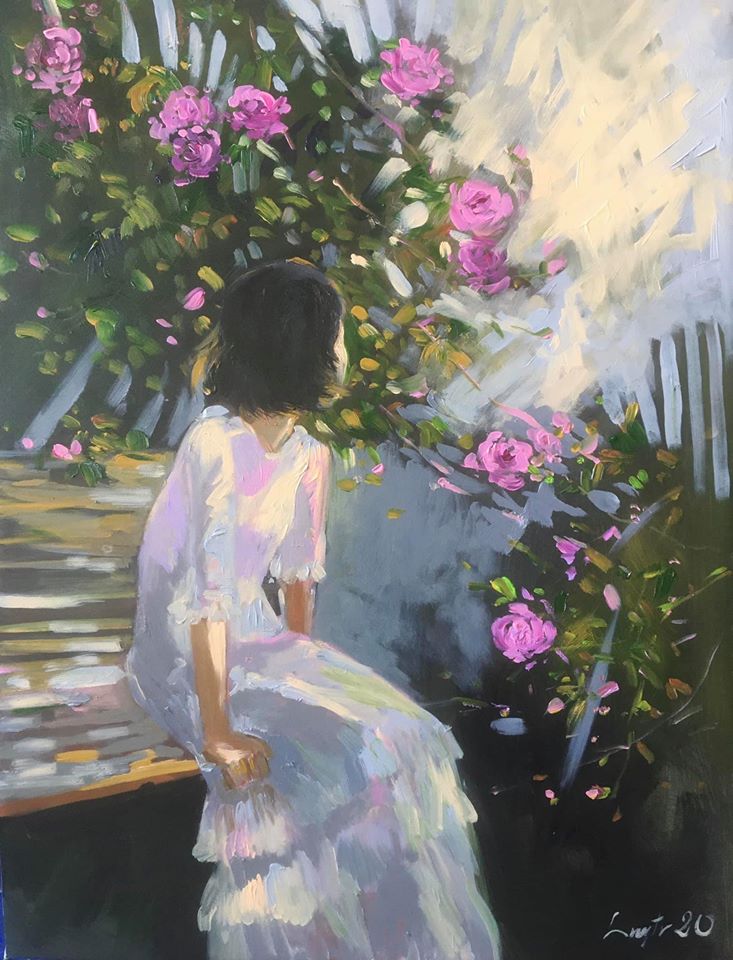 Cô mải mê vẽ, hoàn toàn không để ý tới xung quanh. Kể cả khi tôi đã vô tình bước vào vườn nhà cô, và dừng lại ở một khoảng cách đủ xa để không làm phiền.