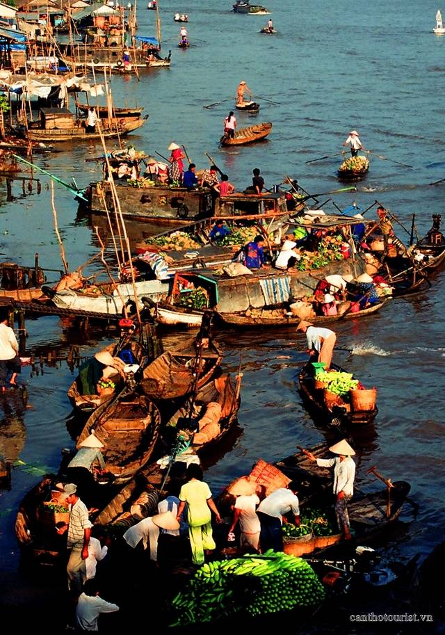 Sau chừng 30 phút lênh đênh trên sông nước miền Tây lúc tờ mờ sáng, thưởng thức những hơi thở mát lành của miền châu thổ, chúng tôi đã tới chợ nổi trên sông Cái Răng đúng vào lúc chợ đông nhất. Với những người sinh trưởng ở miền Bắc như chúng tôi, dù đã từng tham dự nhiều loại chợ, như chợ phiên đồng bằng miền bắc, chợ trâu miền cao, hay chợ Viềng âm phủ họp lúc nửa đêm… chúng tôi vẫn ngỡ ngàng trước khung cảnh chợ nổi nơi miền sông nước.