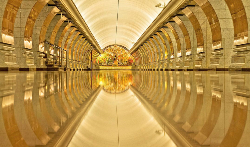 11:00. Đoàn tham quan quần thể tàu điện ngầm nguy nga tráng lệ của Moscow.