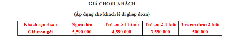 - Quý khách được lo vé vào cổng tại các điểm du lịch trong chương trình.