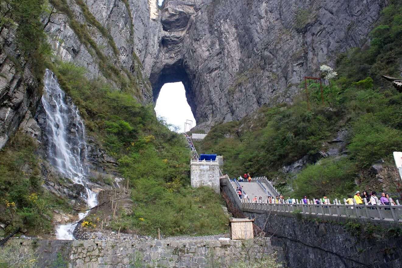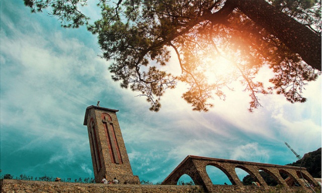Trong chặng đường đến nhà thờ đá, chúng ta có thể rẽ trái để lên Cổng Trời. Từ Cổng Trời, chúng ta có thể cùng những người bạn đồng hành ngắm nhìn những cánh rừng bạt ngàn, những cung đường uốn lượn quanh co bên sườn núi, những ngôi biệt thự xinh xắn trong thị trấn, những khu vườn su su xanh tươi, rừng thông xanh mơn mởn và những làn mây bồng bềnh cứ ngỡ chỉ cần vươn cao một tí là được chạm vào. Nơi đây mờ ảo, lung linh và rất lãng mạn, toát lên vẻ đẹp lạ lùng, thần tiên của vùng đất Tam Đảo.