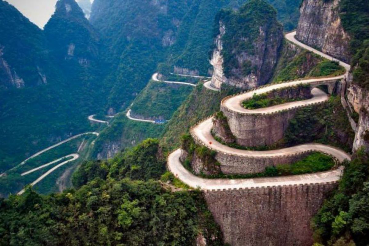 Khi lên tới đỉnh của Thiên Môn Sơn, quý khách sẽ đi theo con đường bao quanh những đỉnh núi, xuyên từ đỉnh núi này sang đỉnh núi khác.